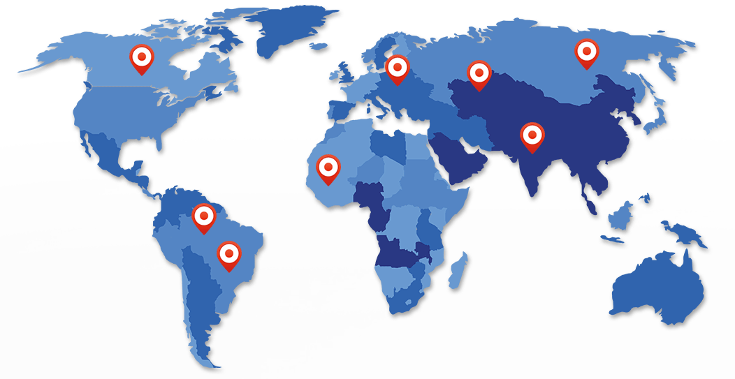 South America (Costa Rica, Mexico, Colombia, Peru, Chile, Brazil), Europe (Italy, Spain, Russia)