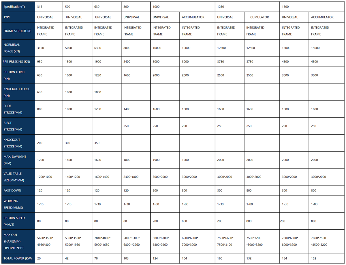 Press Capacity: 315 tons-1500tons
